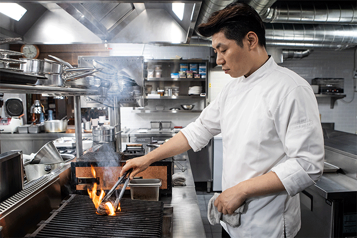 서양식 그릴과 일본식 화로인 곤로, 중국요리를 할 때 쓰는 웍을 활용해 최고의 맛의 접점을 찾는다. 스테이크를 초벌할 땐 그릴을 사용해 육즙을 최대한 살리고, 곤로에 옮긴 뒤, 미리 피운 숯불과 사과나무 칩으로 훈연해 향이 베이도록 한다. 웍은 스테이크에 곁들일 가니쉬를 만들 때 주로 사용한다. 양배추, 샬롯, 겨자잎 등 채소 위에 올릴 소스를 만들 때 ‘더훈’에서 직접 만든 멸치 소스와 치킨스톡을 조리할 때 웍을 사용하는 것. 동서양의 컬래버레이션은 조리 기술 이외에도 재료의 선택에 있어 다시 한번 빛을 발휘한다.