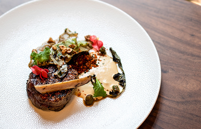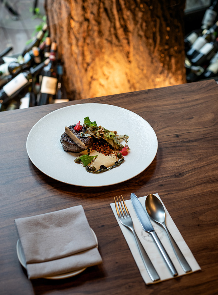 단순히, 공간만 비밀스럽다고 해서 아지트로 삼는 경우는 드물다. SNS에 올릴 만큼 가게가 예쁘다고 해도 음식이 맛 없다고 소문나면 손님들은 발을 끊기 마련이다. 그러나 맛에 관해선 염려할 필요가 없다. ‘더훈’은 도산공원의 명소로 자리잡은 ‘에스테번’의 총괄 셰프 출신 송훈 오너 셰프가 새롭게 자리한 곳이기 때문이다. 송훈 셰프는 프렌치, 이탈리안으로 대변되는 유러피안 스타일 보다는 아메리칸 컨템포러리 다이닝을 추구한다. 세계 각국의 사람들로 구성된 미국에서 편하게 먹는 음식을 베이스로 하기 때문에 동서양의 경계를 묘하게 허무는 송훈만의 퓨전 레시피에 박수를 치게 된다. 서양 요리의 이미지가 강렬한 등심 스테이크도 ‘더훈’에선 크레에이티브한 메뉴로 변신한다.