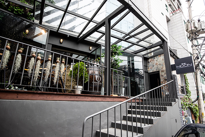 미국 뉴욕에는 겉보기엔 넓지 않은 레스토랑도 문을 열고 들어가면 안쪽으로 깊숙이 큰 곳들이 많다. 레스토랑의 각 테이블마다 개인적인 공간으로 잘 나뉘어 있다 보니 뉴욕에 오래 거주하다 보면 저마다의 아지트가 생긴다고들 한다. 지난 3월 한남동에 새로 오픈한 모던 아메리칸 스타일 레스토랑 ‘더훈(The HOON)’도 비밀스러운 공간에 가깝다.