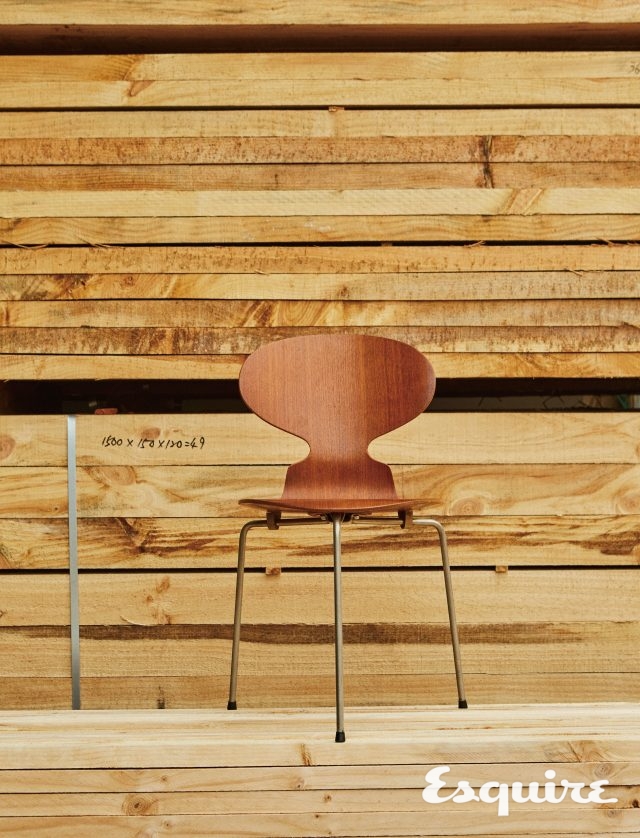 개미를 닮아 ‘앤트 체어’라 부른다. 의자의 제조사인 프리츠 한센은 훗날 다리 4개인 여러 색깔의 버전을 더 만들었지만 아르네 야콥센이 사랑한 것은 천연 나무 색에 다리 3개인 이 디자인뿐이었다. 다리가 3개여야 다른 사람(의자)과 물리적으로 더 가까이, 더 여럿이 둘러앉을 수 있어서. 80만원대 프리츠 한센 by 원 오디너리 맨션.