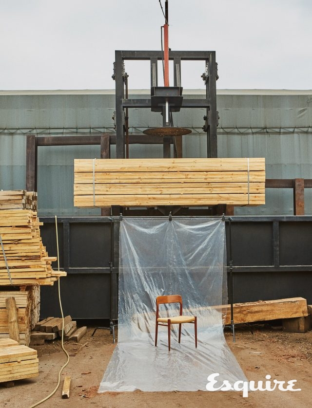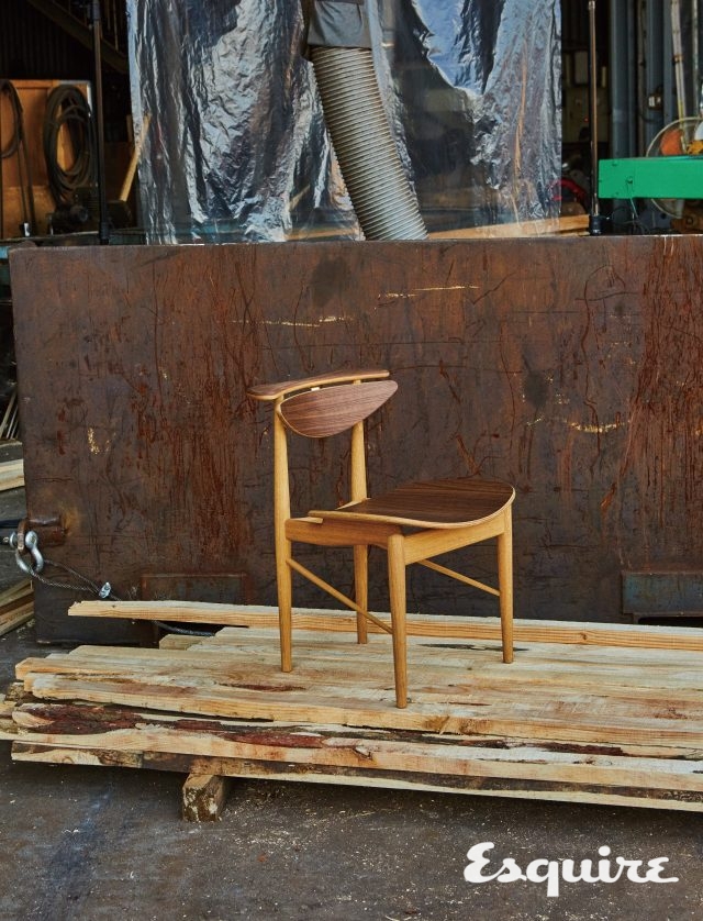 덴마크 디자이너 닐스 오 묄러가 디자인한 이 의자는 곧은 나뭇결, 견고한 속성의 티크로 만든다. 앉는 부분은 푹신한 천으로 보이지만 이 역시 나무다. 정확히는 나무로 만든 종이를 꼬아 만든 페이퍼코드다. 씨실과 날실처럼 페이퍼코드를 엮어 시트 하나를 만드는 데 130m의 페이퍼코드가 쓰인다. 아낌없이 준 나무에게 미안해질 정도로, 앉으면 엉덩이가 ‘사락’ 하고 감긴다. 95만원 닐스 오 묄러 by 룸퍼멘트.
