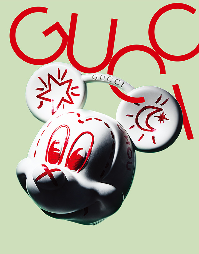 미키마우스 형상의 명랑한 가방. 손으로 직접 그려 넣은 장난스러운 그림과 레터링이 유쾌하다. 630만원 구찌