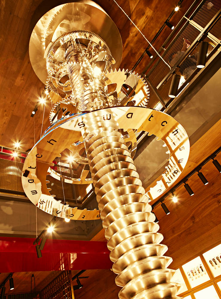 총 3층으로 이루어진 스와치 명동 스토어는 시크한 외관과 달리 반전 매력을 품고 있다. 입구에 들어서자마자 펼쳐지는 1층 매장에서는 4백 종 이상의 스와치 모델을 한눈에 감상할 수 있다. 시계뿐 아니라 선글라스와 액세서리 등 스와치의 전 라인을 살펴보 고 비교할 수 있어 쇼핑을 한층 즐겁게 만든다. 스와치 명동 스토어는 기존 매장과 완전히 차별화된 인테리어와 전시로 오감을 만족시킨다. 계산대와 공간을 분리 하는 벽면은 모두 격자무늬 창살을 이용해 전통미와 고급스러운 분위기를 한껏 살렸다. 2층부터 3층까지 이어지는 1톤짜리 스크루 조형물은 스와치의 아이덴티 티를 확실하게 보여주면서 설치미술 한 점을 감상하는 듯한 느낌을 준다. 이 조형 물은 스와치의 오토매틱 워치인 ‘SISTEM51’의 51개 부품을 형상화한 작품이다. 벽면 곳곳에 전시된 스와치의 역대 리미티드 에디션과 그래피티 아트 등을 감상 하는 재미 또한 크다. 리미티드 에디션은 구할 수 없는 경우가 대부분이지만, 간혹 인기에 힘입어 재고를 확보해놓는 경우도 있으니 직원에게 문의해볼 것. 도쿄 한 정으로 발매된 베이프 컬래버레이션 제품 6종과 명동 에디션은 명동 스토어에서 만 한정 수량으로 만나볼 수 있다고 하니 서둘러 방문해보자.