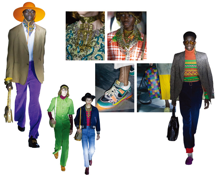 “이 패션쇼는 자유에 대한 찬미입니다.” 로마 카피톨리니 미술관에서 구찌 2020 크루즈 컬렉션이 공개되기 직전, 알레산드로 미켈레가 말했다. 곧이어 공개된 컬렉션은 알레산드로 미켈레의 말처럼 자유를 향한 메시지가 가득했다. 1970년대에서 영감을 받은 테일러드 룩에는 자유를 부르짖는 문구와 숫자가 새겨졌고, ‘My Body My Choice’라는 페미니스트 슬로건이 적힌 티셔츠가 런웨이에 등장했다. 알레산드로 미켈레는 예술적, 역사적으로 중요한 장소인 카피톨리니 미술관에서 영감을 받은 룩을 선보이는 것도 잊지 않았다. 고대 로마 시대에 입었을 법한 드레스, 성직자의 복식을 닮은 케이프와 코트, 드레이프 가운 등이 돌연 웅장하게 등장했다. 곳곳에서는 맥시멀리스트 알레산드로 미켈레의 솔직한 면모도 맘껏 드러냈다. 미키마우스로 빼곡하게 뒤덮인 코트와 휘황한 벨벳 소재 벨 보텀 팬츠, 양쪽 귀와 쇄골을 빈틈없이 장식한 볼드한 액세서리까지. 이상적 메시지 전달과 역사적 고증, 자아실현 그 어느 것 하나도 놓치지 않은 컬렉션이 분명했다. →