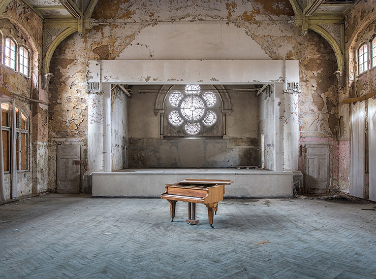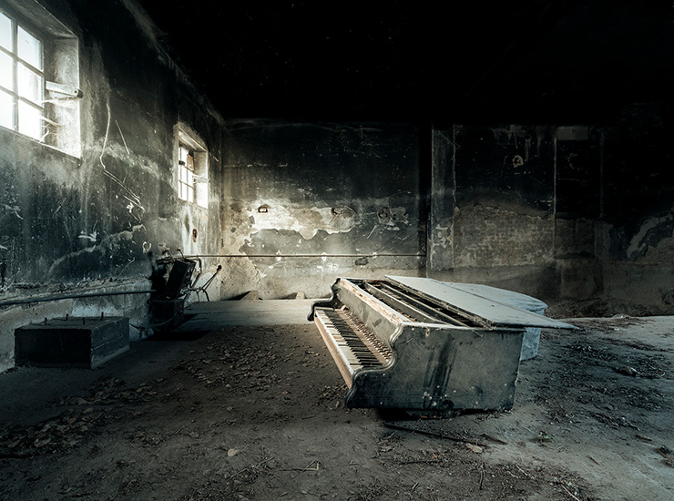 <Requiem pour Pianos> Romain Thiery ‘어벡스(urbex)’라는 표현이 있다. ‘urban exploration’, 즉 ‘도심 탐험’의 줄임말로 도심 속의 버려지거나 출입이 금지된 공간을 탐험하는 취미를 뜻한다. 로메인 티에리 역시 지난 10년간 유럽 곳곳의 버려진 성과 문화 시설을 찾아다닌 사진가다. 다만 그의 대표작 <Requiem pour Pianos>는 통상의 어벡스 사진과는 조금 다른 시선을 보여준다. 폐허 자체가 아닌, 그 속에 버려진 피아노를 포착한 작업이기 때문이다. “피아노가 고상함이나 권력의 상징이던 시절이 있었죠. 부유한 집은 음악가가 아니더라도 피아노 한 대씩은 꼭 장만해놓던 시절 말이에요. 하지만 세대에서 세대로 대물림되면서 때로는 짐이 되기도 했을 거예요. 또 어느 시점에는 내다버리거나 집에 두고 떠날 수밖에 없는 이유가 생기기도 했을 테고요.” 아시아인의 눈에는 방치된 피아노가 이렇게 많다는 사실이 놀랍다고 하자 로메인 티에리는 “내 눈에도 그렇다”고 답했다. 그는 지금껏 프랑스를 비롯한 11개 국가에서 100개가 넘는 피아노를 촬영했으며 프로젝트는 앞으로 더 확장할 예정이다.