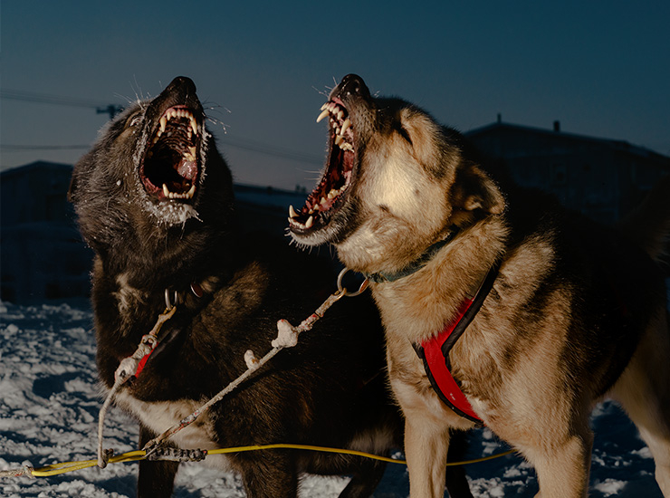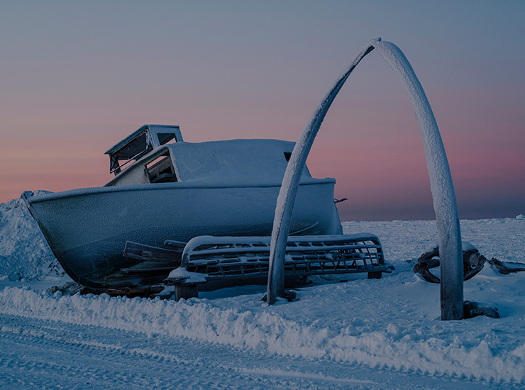 <Polar Night>는 작년 연말, 사진집 형태로도 나왔다. 새까만 커버 사이를 채운 26장의 사진은 대부분 앞서 묘사한 우트키오야비크의 황량한 거리 풍경인데, 몇 장의 예외가 있다. 한 장의 인물 사진, 그리고 개를 포착한 세 장의 사진. 그가 이 프로젝트를 통해 보여주고자 했던 건 극지 마을의 척박함만은 아니었기 때문이다. 마크 머헤이니의 표현에 따르면 이 사진집은 ‘고난과 생존에 대한 시각적 시(詩)’다. “고등학교를 방문했을 때 마을의 자랑인 레슬링 선수를 만났어요. 저는 그 학생이 경기장 안에서 공격 자세를 취한 모습이 마음에 들었죠. 전사처럼 보였달까요. 알래스카 북부의 마지막 썰매 개들 역시 사진집에 생명을 불어넣는 요소입니다. 기척이라곤 찾을 수 없는 거리를 찍고 있으면 코너에서 개 짖는 소리가 들리곤 했으니까요.” 예외적 사진이 한 장 더 있다. 햇빛을 담은 사진. 극야는 정확히 마크 머헤이니가 마을을 떠나던 날 아침에야 끝났고, 그는 어둠이 물러가는 장면을 가까스로 한 장 남길 수 있었다. 마을의 상징인 바다표범 사냥 배와 얼어붙은 고래의 턱뼈 너머로 분홍빛 하늘이 열리는 이 사진은 <Polar Night>의 마지막 장에 실렸다.