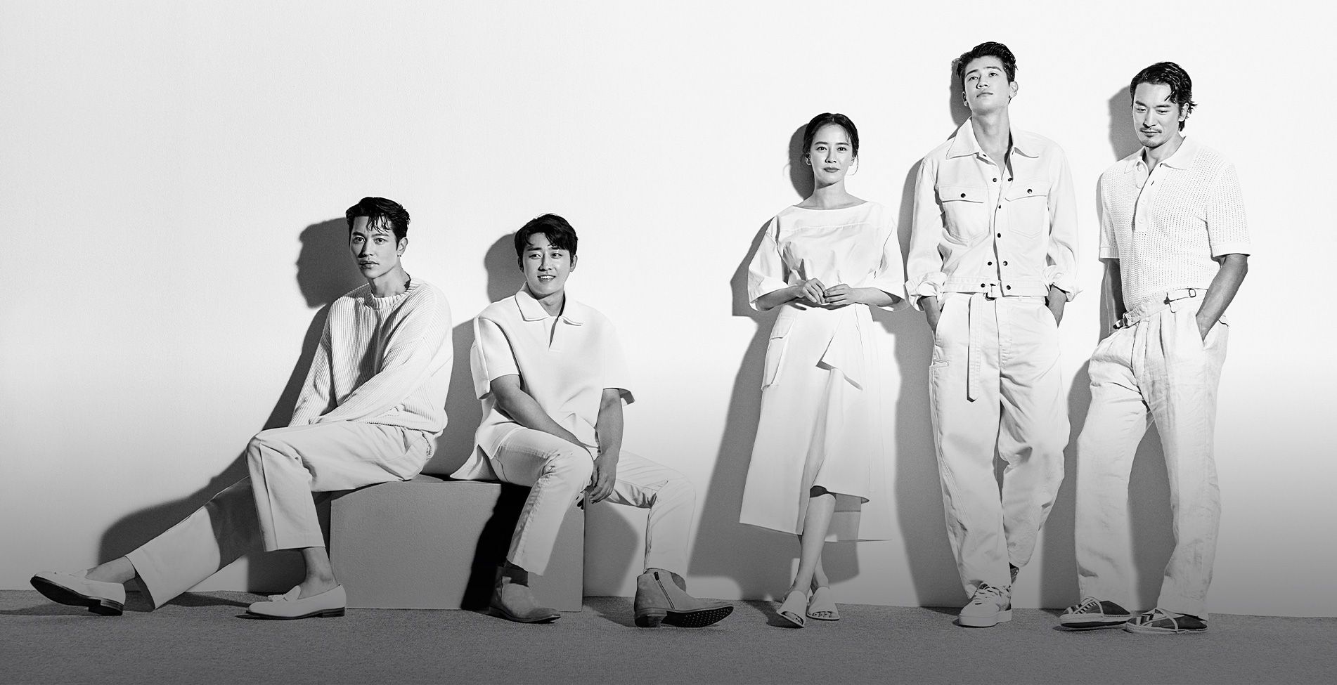 (송종호) 스웨터 발리. 팬츠 캡틴 선샤인 by 샌프란시스코 마켓. 태슬 로퍼 알든. (손호준) 피케 셔츠, 화이트 데님 팬츠 모두 메종 마르지엘라. 첼시 부츠 토즈. (송지효) 화이트 원피스 준지. 슈즈 토즈. (구자성) 재킷, 팬츠 모두 르메르. 슬리브리스 톱 디올 맨. 스니커즈 크리스찬 루부탱. (김민준) 피케 셔츠 산드로. 리넨 팬츠 이스트 하버 서플러스 by 샌프란시스코 마켓. 애스파드리유 구아나바나.