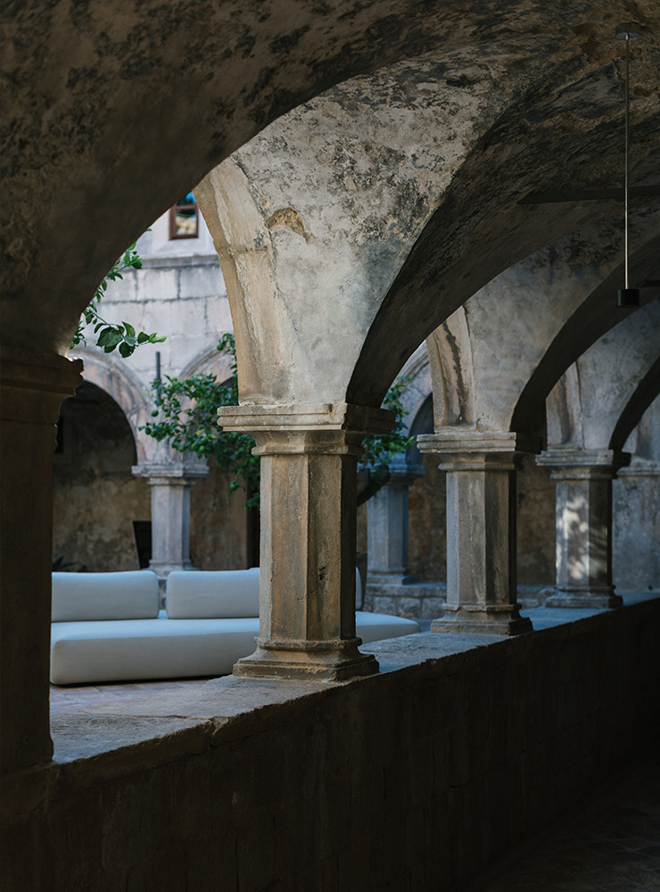 이 호텔의 존재로 여행 애호가를 탄식하게 만들기란 그리 어렵지 않다. 사진을 몇 장 보여주면 식은 죽 먹기이고, 어쩌면 그냥 관련 키워드 몇 가지 읊는 것만으로도 가능할 것 같다. 마냥 허풍 같다면 당장 스스로 시험해보시라. ‘아드리아해에 면한 발칸반도의 작고 조용한 섬, 500여 년 전에 지은 프란체스코 수도사들의 요새, 영국 여왕 다음간다는 미술품 컬렉터의 방, 중세 약사들이 조성한 약초 정원과 지하 비밀 동굴로 연결된 해안.’