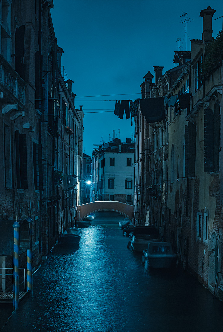 높아지는 수면과 들끓는 관광객들의 열기 속에 베네치아는 사라져가고 있었다. 그러나 베네치아의 밤거리를 찍은 사진 연작에는 이 작은 섬을 향해 다가오는 그런 위협이 전혀 드러나지 않는다. 그저 고요히 아름다울 뿐.