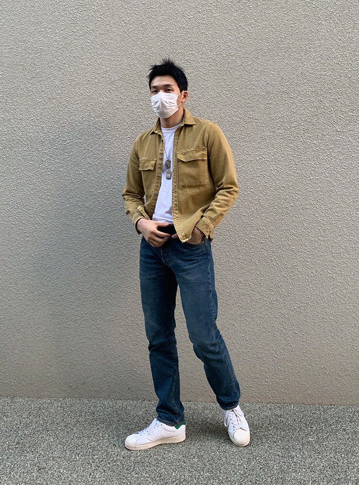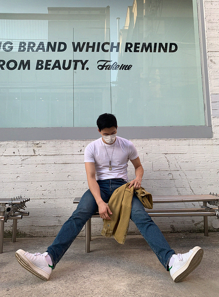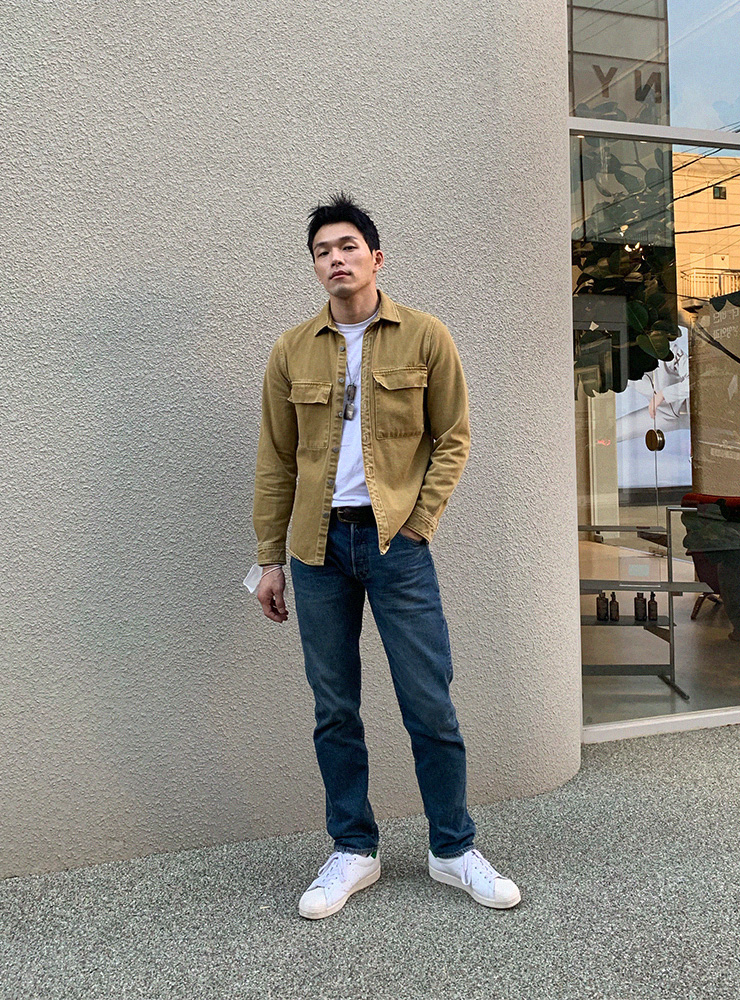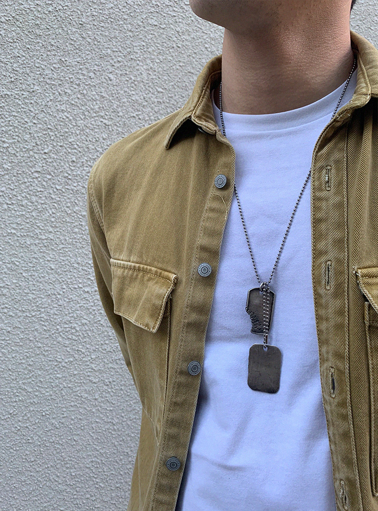 빈티지 셔츠 재킷과 데님, 군번줄 악세서리까지.