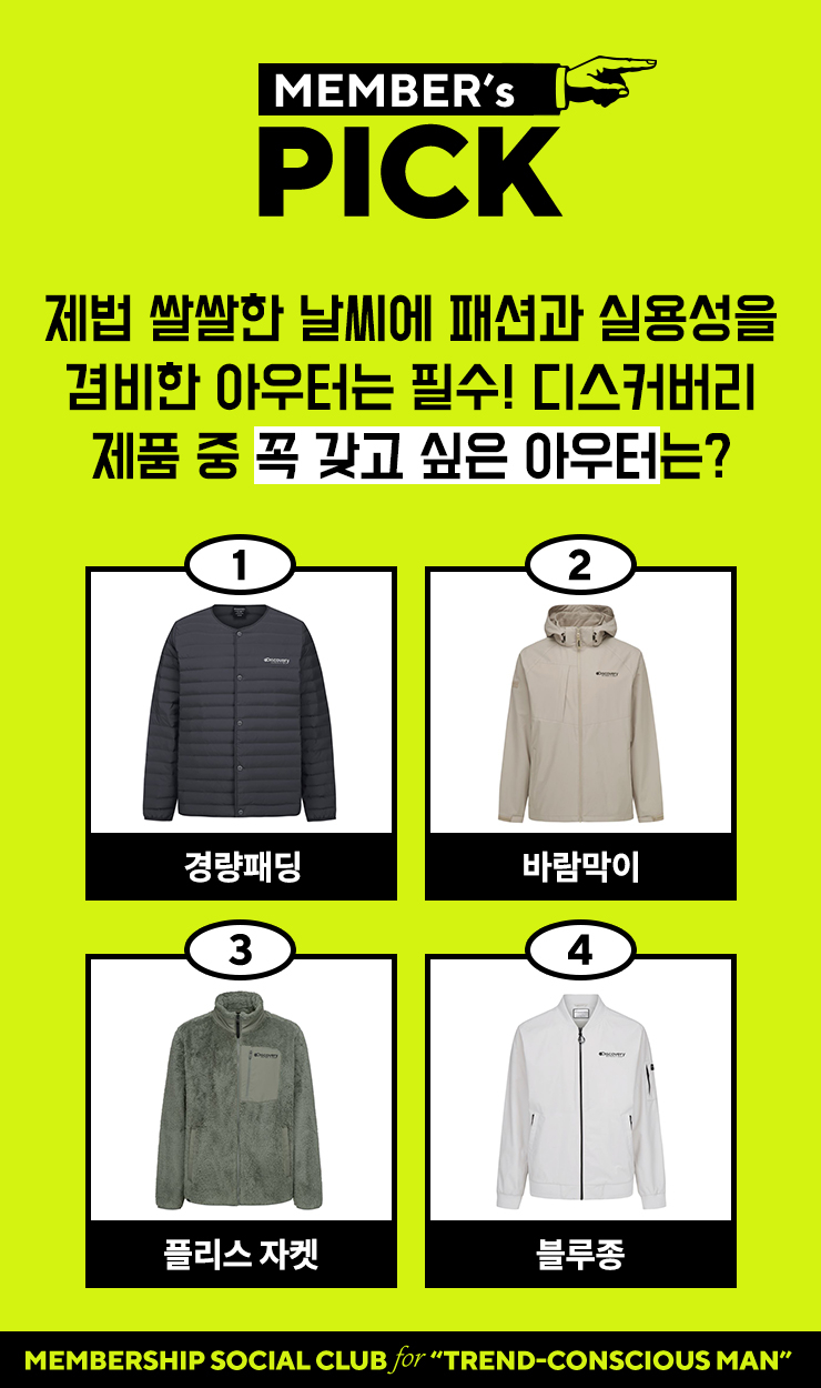 <멤버스픽> 쌀쌀한 날씨에 내가 꼭 갖고 싶은 디스커버리 아우터는?