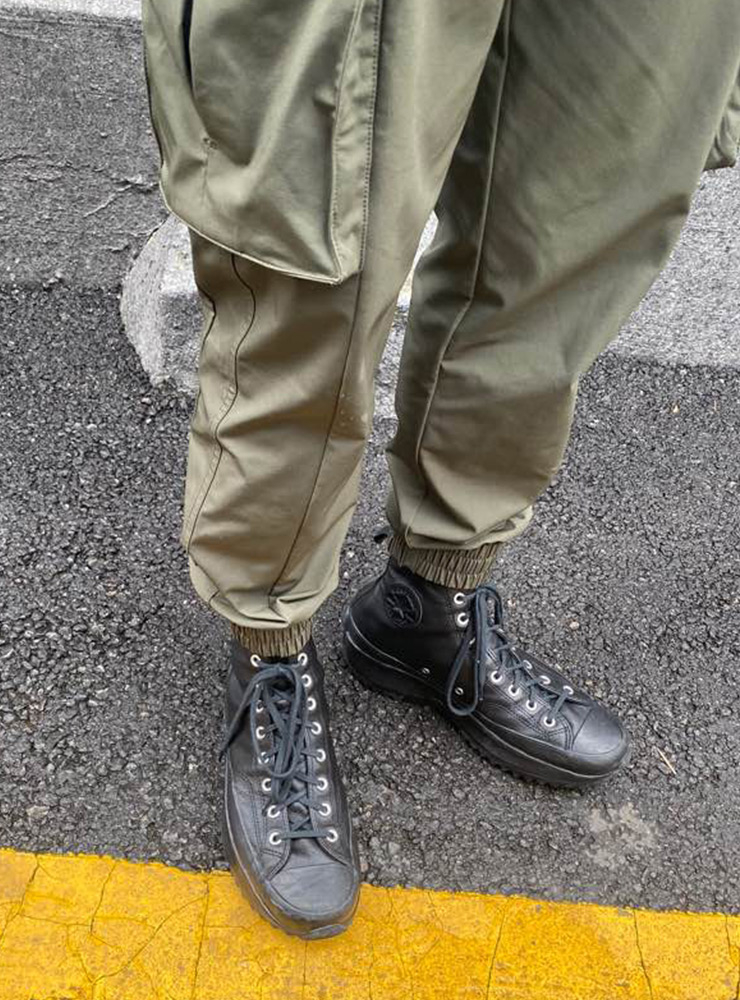 블랙 앤 카키 톤으로 밀리터리 느낌 살리기.