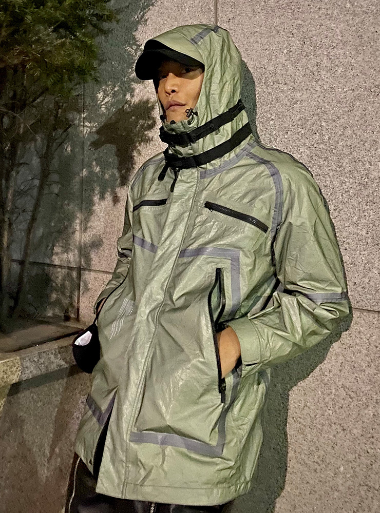 아우터 하나로 실용성 있는 테크웨어룩 연출.