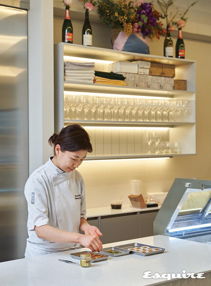 윤송이 셰프는 어쨌든 정의를 내려야 하니까 ‘디저트 코스’라고 이름 붙였지만 사실 10월 19일에서 만날 수 있는 건 좀 더 넓은 범주의 음식이라고 했다. 이름하여 ‘세이버리 디저트(Savory Dessert).’ 다양한 계절 식자재를 중심으로 그 풍미를 가장 잘 전달할 수 있는 방식으로 조리하고 근사하게 플레이팅해 내는 것이다.