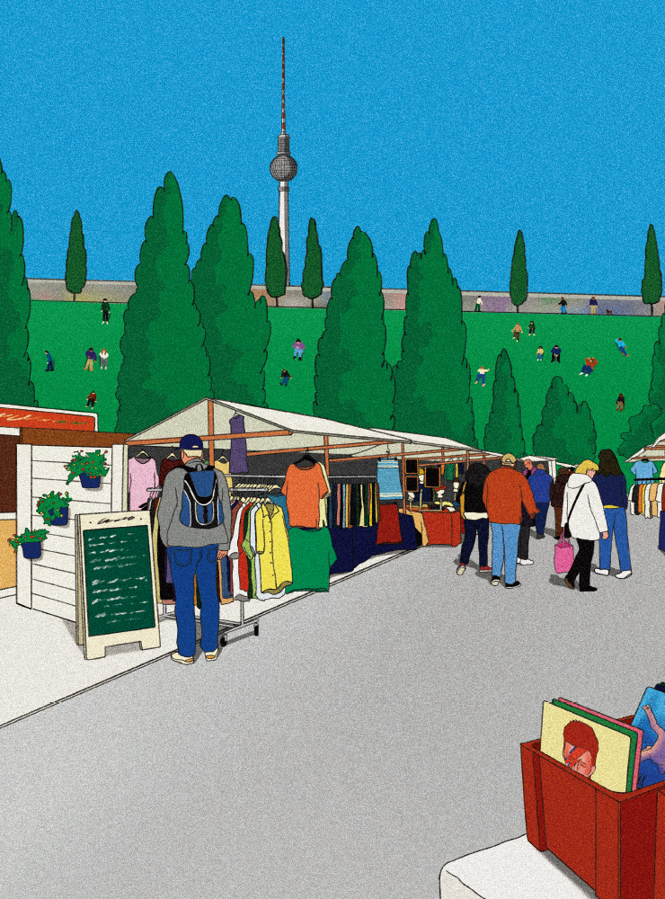두 번째 여행에선 의도한 차별점이 있긴 했다. 지난 여행보다 좀 더 오래, 여유롭게 지내며 ‘베를리너’의 감흥을 느껴보는 것이었다. 유난히 하늘이 맑았던 일요일, 이른 아침부터 친구와 시나몬롤을 한 덩이씩 쥐고서 마우어파크로 향한 것도 그런 이유였다. 항간에 베를린을 여행하려면 반드시 일요일을 껴서 가야 한다는 말이 있는데, 바로 마우어파크에서 열리는 대규모 벼룩시장 때문이다. 과연 이른 시간, 공원 입구 바깥에서부터 장사 준비를 하느라 정신없는 사람들이 보였다. 허둥지둥하는 그들의 마음을 아는지 모르는지 부스들 뒤로는 잔디밭과 길쭉한 나무들이 시원하게 펼쳐져 있었다. 새파란 하늘 아래 광활한 초록. 그것만으로도 이미 내 마음을 사로잡기 충분했다.
