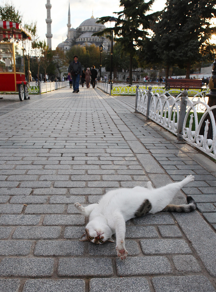 더러 순전히 고양이를 보러 이곳을 찾는 여행자도 있다. 이스탄불을 다녀간 한국의 애묘인들 중 상당수는 고양이 여행 명소로 술탄 아흐메트 공원을 첫손에 꼽는다. 공원에는 대략 30마리 안팎의 고양이가 여기저기 흩어져 있다. 잔디밭에 누워서 낮잠을 자는 녀석들이 있는가 하면, 사람보다 먼저 벤치를 차지하고 느긋하게 그루밍 중인 고양이도 있다. 그러다가 누군가 케밥이나 샐러드 포장을 여는 순간 곳곳에서 고양이들이 한데 몰려들기 시작한다. 실제로 처음 공원을 찾은 날 마주쳤던 광경도 케밥을 먹는 관광객을 포위한 10여 마리의 고양이였다. 고양이들에게 포위당한 한 여성은 자기 식사의 절반가량을 고양이들에게 바치고서야 풀려나기도 했다.