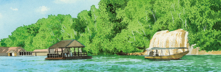 작은 시내를 뺀 나머지 깐차나부리는 대자연이다. 북서쪽으로 카오램 국립공원, 사이욕 국립공원, 에라완 국립공원까지 세 개의 커다란 국립공원도 자리 잡고 있다. 내가 가본 건 그중 두 공원, 쾌노이강이 흐르는 사이욕 국립공원과 쾌야이강이 흐르는 에라완 국립공원이다. 사실 계기는 사소했다. 처음 깐차나부리를 여행할 때 구글 지도 추천 관광 명소에서 보았던 곳이 사이욕 노이 폭포였다. 그리고 오토바이로 그리 멀지 않은 곳이기에 ‘한번 가볼까’ 싶은 가벼운 마음으로 출발했는데, 좌우로 산에 둘러싸인 아름다운 길을 달리다 보니 폭포를 지나쳐 사이욕 국립공원까지 도달해버린 것이다. 입장료도 꽤 비쌌지만 입구 앞에 서니 그냥 돌아설 수는 없었다. 웅장한 나무들과 대비되는, 한산하기 그지없는 분위기 때문인지 국립공원은 어쩐지 소박해 보였다. 쾌노이강 다리에서 내려다보이는 폭포도 아주 작았다. 그 앞을 유람선 크기의 보트가 유유히 흐르고 있었는데, 탑승객들 모두 목청껏 노래를 부르며 신나게 놀고 있었다. 이 깨끗하고 소박한 공원에서, 이 한낮에. 하지만 돌이켜보니 내가 그다음 해에 또 한 번 깐차나부리를 찾은 것도 이상하게 그 풍경에 매료되었기 때문이 아닐까 싶다.