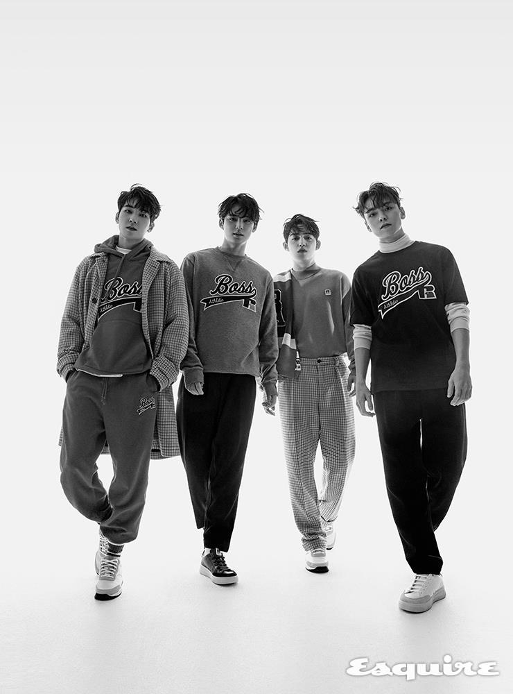 민규 지금까지 힙합팀은 화보 촬영을 하면 성숙한 느낌의 슈트를 자주 입었거든요. 오늘 촬영은 보스 맨과 함께했는데, 캐주얼하고 영한 느낌이라 특별하게 느껴졌어요. 저희 힙합팀과 잘 어울린 것 같아요. 더 젊어 보이는 효과도 있고.(웃음)