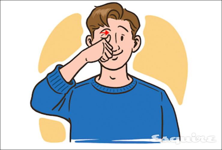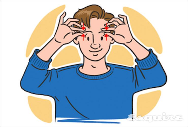 엄지와 검지를 이용해 눈썹 주변을 꼬집듯 강하게 누른 채 10초 동안 유지한다.