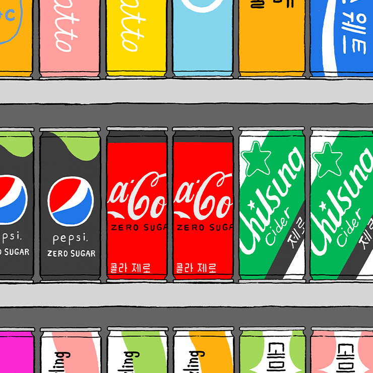나는 제로 콜라만 마셨다. 오랫동안 그랬다. 지금은 아니다. 제로 사이다도 마시고, 제로 웰치스도 마신다. 아이스티도 당연히 제로칼로리로 마실 수 있다. 그리고 나만 이런 변화에 기꺼이 뛰어든 건 아닌 것 같다. 식품업계 추산에 따르면 국내 제로칼로리 탄산음료 시장은 2021년 2189억원으로 2019년 452억원에 비해 5배 규모로 성장했다. 수치를 분석할 필요도 없다. 편의점에 가보면 눈으로 확인할 수 있다. 요즘 대세가 또 편의점 아니던가. 심지어 컵라면 조리법도 전자레인지에 넣는 방법과 끓는 물만 사용하는 법 두 가지로 표시되는 시대다. 어떤 식품이 정말로 인기 있는지 그렇지 않은지 궁금하면 그냥 편의점에 가시라. 한때 화제였던 미식라면? 진열대 맨 밑에 있다 없다 한다. 제로칼로리 음료는 냉장 진열대에서도 한눈에 들어오는 높이에 놓여 있다. 선택의 폭이 다양할 뿐만 아니라 1+1로 판매되는 제품도 많다. 더 말해 무엇 하나. 제로칼로리 음료는 더 이상 소수파가 아니다. 우리가 주류다. 하하하.