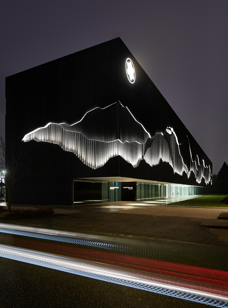 디지털 시대에 손글씨는 어떤 가치를 지닐까? 몽블랑이 글쓰기의 방대한 세계로 안내할 ‘몽블랑 하우스(Montblanc Haus)’를 개관했다. 몽블랑이 시작된 도시, 독일 함부르크에 위치한 이곳은 몽블랑 본사와 필기구를 제조하는 매뉴팩처와 이웃하고 있었다. ‘뮤지엄’이라는 단어가 주는 관념과는 달리 건물 외관은 극도로 미니멀하고 현대적이었다. 몽블랑의 역사적인 필기구 패키지 모양을 오마주한 사각 형태, 몽블랑산의 실루엣을 건축적으로 표현한 파사드, 몽블랑의 강력한 심벌, 블랙으로 일관한 상징적인 컬러로 완성된 건물은 그 자체로 세련된 상징이었다. 스페인 마드리드의 니에토 소베하노 아키텍토스(Nieto Sobejano Architectos)가 설계한 이 건물은 전통적인 유럽 도시의 경관과 대비되며 강렬한 존재감을 드러냈다.