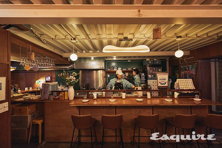 두 사장이 알려준 ㅆㅎㅍ(‘쓰흪’이라 읽는다)을 제대로 즐기는 법은 다음과 같다. 가급적 바 좌석에 앉는다. 대뜸 안주부터 시키기에 앞서 전통주, 맥주, 와인까지 80종에 달하는 주류 리스트를 찬찬히 훑어본다. 술에 대해서건 음식에 대해서건 일단 사장에게 물어본다. ‘극도의 I’인 김슬지 사장보다는 ‘극도의 E’인 이보미 사장에게. 참, 그리고 가게로 올 때 신당 서울중앙시장 큰길에서 동쪽 방향 골목길로 와야 한다. 지도 앱들은 자꾸 신당역 2번 출구 쪽에서 올라가라고 알려주는데, 그 길에서는 식자재 시장의 강렬한 동물 내장 냄새를 맞닥뜨리게 된다. “그런데 손님들 얘기를 들어보면 그런 경험이 좋은 점도 있나 봐요. <이상한 나라의 앨리스> 속 토끼굴처럼 무섭고 어둡고 냄새나는 골목 끝에 색다른 분위기의 가게가 있으니까요. 입지 때문에 저희 가게를 더 예쁘게 봐주시는 부분이 있는 거죠.” 이보미 사장의 설명이다. 연신내에서 각각 주점과 식당을 운영했던 두 사람은 사교성 외에도 모든 면에서 성향이 정반대다. ㅆㅎㅍ은 그래서 시작되었다고 했다. 두 사람이 좋아하는 걸 다 모아놓으면 좋을 것 같아서. 공통점도 있었다. 이보미 사장과 김슬지 사장은 둘 다 술을 좋아하고, 전형적인 것보다는 재미있는 걸 선호하며, 재래시장에서 장 보는 취미가 있다. 그것들이 모두 고스란히 ㅆㅎㅍ의 근간이 되었다. “저희가 새벽