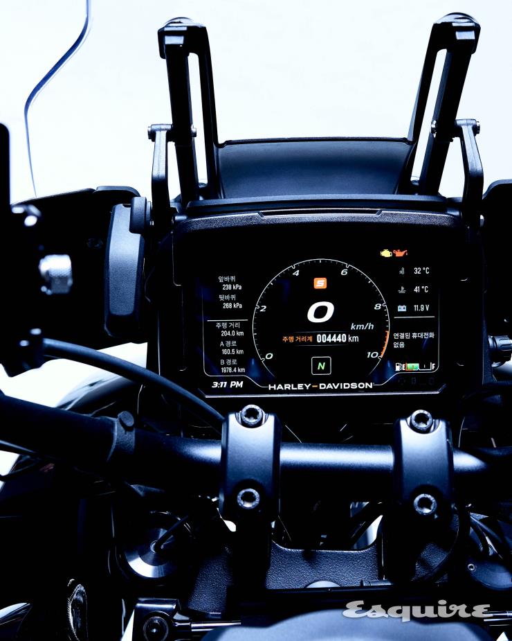 처음엔 반신반의했다. 할리데이비슨이 만든 어드벤처 투어링 모터사이클이라니. ‘동일한 세그먼트의 굳건한 강자들과 비교해 어떤 장점이 있을까?’ ‘브랜드 특유의 터프한 고동감은 어떻게 구현했을까?’, ‘호불호가 심하게 갈리던데’ 하는 등의 수많은 의문이 머릿속을 헤집었다. 무엇보다 헤리티지를 중요하게 여기는 내게 이 바이크는 존재 자체가 의구심이었고, 결국 직접 시승하기에 이르렀다. 소개팅의 승패는 3초 만에 갈린다는 말은 사실이었다. 실물로 마주한 순간 호감을 느꼈으니까. 팻밥을 떠오르게 하는 우람한 헤드라이트와 직각의 조형이 선사하는 머스큘린한 인상, 어드벤쳐 투어링 모터사이클이라면 응당 있어야 할 부리 모양을 없애버린 과감함까지. 할리데이비슨의 터프한 DNA를 고스란히 물려받은 모양새에 반할 수밖에 없었다. 가뿐히 바이크에 올라 도로를 달리고 싶었지만, 약 870mm가 넘는 시트고에 몸을 올리는 데 한참이 걸렸다. (스페셜 모델은 ARH(Adaptive Ride Height) 기능을 탑재해, 바이크 정차 시 차량 높이를 자동으로 830mm까지 낮출 수 있다) 약 258kg의 육중한 바이크를 이끌고 도로를 달린 첫 소감은 ‘가볍다’. 하중의 밸런스가 뛰어난 덕분인지 톱 박스 3개를 탑재한 채로도 날렵한 주행과 차선 변경이 가능했다. 가속 또한 뛰어났다. 낮은 기어에서도 어느새 높은 속도에 도달해 경쾌한 느낌이 들기도 했고. 폭발적이기보다는 매끄럽고 안정적인 주행감. 브랜드 특유의 묵직함이나 터프한 고동감을 기대하는 이에게는 조금 아쉬울 수 있다. 하지만 온로드 장거리 주행을 목적으로 한다면 피로도를 최소화할 수 있는 좋은 선택지로 느껴진다. 짧게나마 달려본 오프로드에서는 또 새로운 면모를 발휘했다. 가볍고 매끄러운 주행감이 거친 흙바닥에서는 더욱 안정적인 주행을 도운 것. 높은 시트고와 핸들 포지션이 스탠딩으로 주행 시 편안한 스탠스를 연출하기도 했다. 오프로드를 도전하고 싶은 이들에게 고민 없이 추천할만한 바이크. 문외한도 어드벤처 투어링의 세계에 가뿐히 안착시킬 수 있는 바이크였다.
