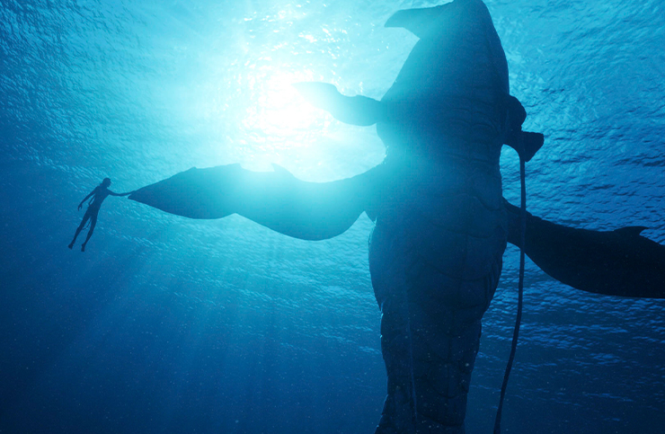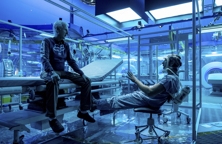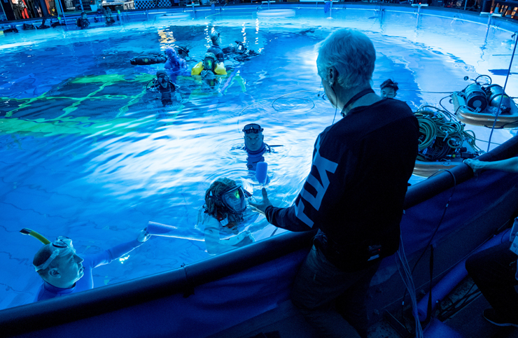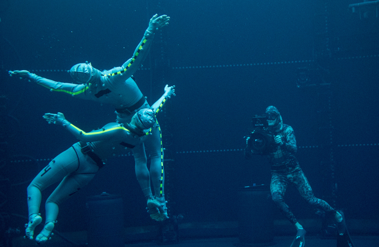 모두 익히 알다시피 <아바타>는 배우들의 연기를 ‘퍼포먼스 캡처’로 기록해 CG를 씌워 만드는 영화다. 하지만 제임스 캐머런은 사실감에 대한 자신만의 완고한 기준을 가진 감독이고, ‘후속편의 제왕’(<터미네이터>와 <에이리언>으로 얻은 칭호다)답게 <아바타>의 후속편을 기획했을 때 그 무대를 확장하고자 했다. 후속 작품의 주요 배경이 바다로 정해지자 그는 실제로 배우들을 물속에 넣고 싶어 했다. 다른 방편도 테스트를 해봤지만 실제로 물에서 촬영하는 것만큼 흡족한 결과물을 얻을 수 없었기 때문이다. 샘 워딩턴은 이렇게 어려운 작품이 난생처음이었다고 했다. 프리다이빙과 수중 촬영에 필요한 모든 주의 사항을 지키면서 죽음에 대한 공포와도 싸우고, 그 와중에도 섬세한 감정 연기를 해야 했다고. “영화가 시작하는 배경은 열대우림이에요. 그래서 촬영을 시작했을 때는 마치 다시 첫 번째 영화 속 세계로 점프해 들어가는 느낌이었죠. 하지만 이야기 속 주인공들이 전쟁을 피해 실향민이 되고 바다 근처에서 피난처를 찾게 되자 우리는 완전히 새로운 환경에 놓이게 됐어요. 그건 배우들뿐만 아니라 모두에게 새로운 도전이었습니다. 수중에서 퍼포먼스 캡처를 한다는 게 어떻게 가능할지, 우리가 하려고 했던 일을 어떻게 해야 하는지 아무도 몰랐으니까요.” 캐머런은 배우들을 하와이의 숲으로 데려가 리허설을 진행하고, 프리다이빙 세계 챔피언을 초빙해 그들에게 숨참기만으로 물속에 머무는 법을 가르쳤다. 그리고 공개된 클립들을 보건대, 퍼포먼스 캡처로 물속에서도 아주 놀라운 영화를 만드는 방법을 깨친 것 같다.
