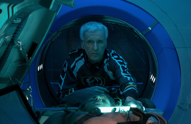 “아직 영화가 완성되지 않았어요. 그래서 저도 아직 한 번도 본 적이 없죠.” 줌 채팅창 너머의 제임스 캐머런 감독이 말했다. 뉴질랜드 시간으로 10월 8일 오후 2시 30분, 한국 시간으로 오전 10시 30분이었다. ‘새 영화에 만족하는가’ 하는, 질문이라기보다 인사처럼 건넨 말에 대한 답이었는데, 그건 아무래도 놀라운 얘기였다. 일찌감치 12월 전 세계 개봉을 확정 지은 영화가, 그것도 디즈니에서 주관하는 인류 영화사에 기록될 규모의 대작이 개봉 2개월 전까지 가편집본도 나온 게 없다니. 캐머런은 굳이 상세 설명을 덧붙였다. “지금도 렌더 효과 팀에서 매일 후반 작업을 거친 장면들이 들어오고 있어요. 우리가 ‘템플릿’이라고 부르는 걸 전달하면 그들이 모든 세부 설정을 넣고 사실적으로 만들어서 보내오는 거죠. 장면들이 들어올 때마다 저는 굉장히 신이 나는데, 그중 몇은 그야말로 아름다워요.”