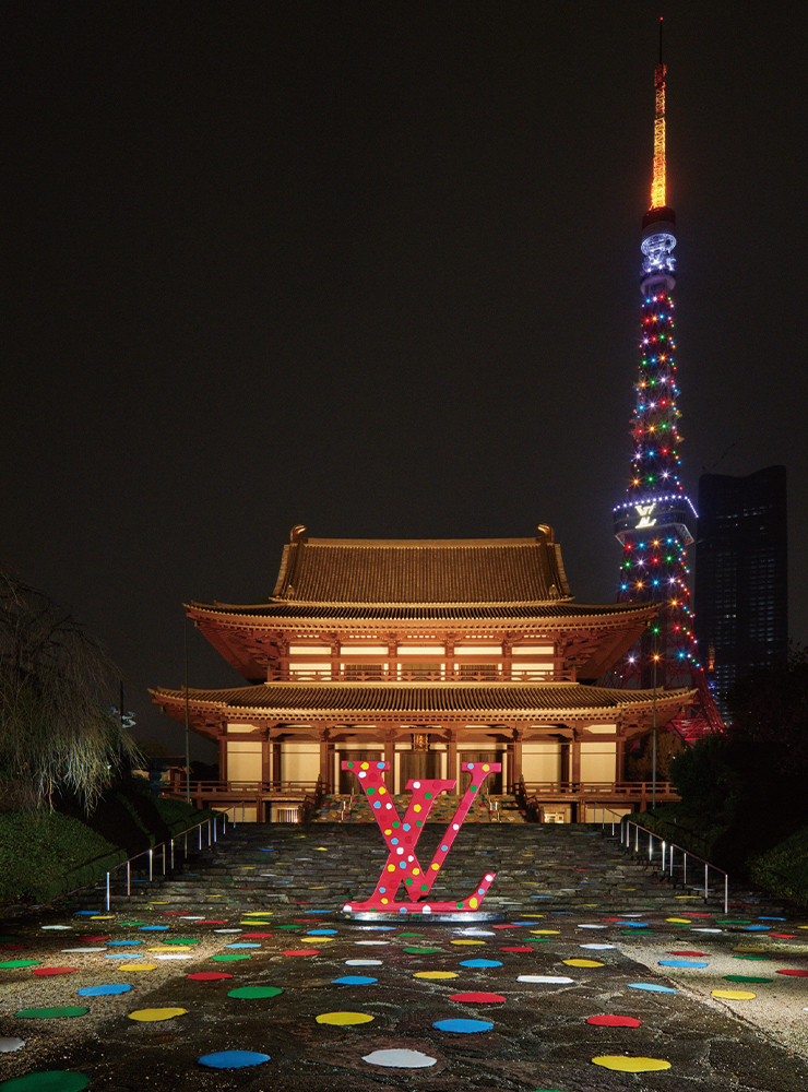루이 비통과 쿠사마 야요이의 협업 컬렉션 출시를 기념해 도쿄에 엄청난 설치물이 들어섰다.