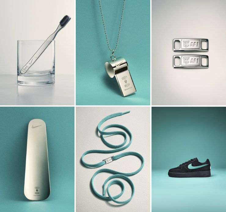 LVMH 그룹에 인수된 이후, 티파니는 유례없이 과감하고 역동적인 마케팅을 펼치고 있다. 이들이 집중하고 있는 전략 중 하나는 컬래버레이션. 펜디와 함께 만든 바게트 백, 다니엘 아샴과 협업한 아트 피스 등이 바로 그 결과물이다. 그리고 티파니는 마침내 나이키와도 손을 잡았다. 나이키 역시 지금까지 수많은 브랜드와 컬래버레이션을 진행했지만 주얼리 브랜드와 협업한 것은 이번이 처음이다. 스포츠와 주얼리 업계를 견인하고 있는 이 두 거인은 에어포스 1 1837의 출시 40주년을 기념한다는 명분 아래 만났다. 그러니 이들의 협업물이 에어포스일 거라 짐작할 수 있었고, 티파니 블루 스우시가 돋보이는 에어포스와 슈즈 박스가 SNS를 뜨겁게 달군 것도 충분히 예상 가능한 전개였다. 하지만 이번 협업은 단순히 스니커즈에만 국한된 것이 아니었다. 다양한 실버 액세서리 컬렉션이 오히려 이번 협업을 더욱 특별하게 만들었다. 나이키 스우시가 박힌 휘슬 펜던트와 슈혼, 슈 브러시, 듀브레, 칫솔은 그 자체로 소장 욕구를 자극한다. 오는 3월 7일, 두 곳의 티파니 뉴욕 매장과 나이키의 SNKRS 앱에서 판매를 시작할 예정이다.