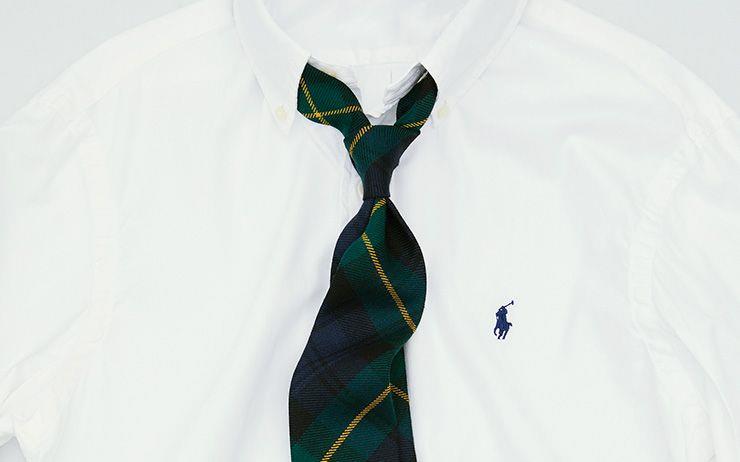 스트라이프 럭비 셔츠 21만원대, 이너 폴로 셔츠 16만원대, 디스트로이드 데님 팬츠 47만원대, 캔버스 스니커즈 13만원대 모두 폴로 랄프로렌.