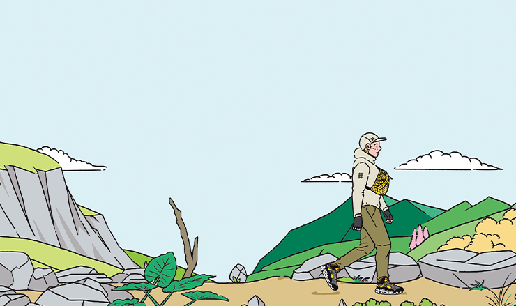 워킹, 러닝, 하이킹에 모두 적합한 무브가 이 난도의 산행에는 적격이다. 가벼운 차림에 잘 어울리면서도 있어야 할 모든 기능을 갖췄다는 게 이 테크니컬 하이킹 슈즈의 최대 장점이다. 비 오는 날에도 뽀송뽀송한 발을 유지해주는 고어텍스는 물론 단단한 접지력의 비브람 메가그립 아웃솔이 당신을 가이드한다.