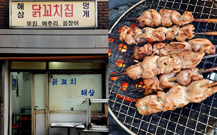 신촌역 5번 출구 위치한 대전해장국. 이곳은 가게 이름과 달리 해장국 없는 닭꼬치 전문점으로 유명하다. 닭꼬치는 주문과 동시에 바로 구워져 김이 펄펄 올라오며, 야들야들한 고기 식감이 특징이다. 껍데기와 모래집과 섞어서 주문도 가능하니 취향껏 골고루 즐겨보자. 또한 2인분 이상 주문하면 콩나물국이 서비스로 나오는데 한입 먹는 순간 왜 이곳이 대전해장국 이름인지 알게 될 것. 이외에도 매콤 칼칼한 닭발 맛집으로도 유명하니 1차로 방문해 푸짐하게 먹는 것도 추천한다.