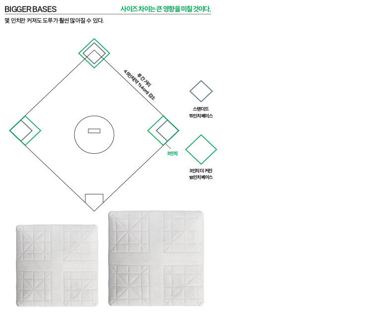RULE CHANGE 2 - 루의 베이스가 15인치 정사각형에서 18인치 정사각형으로 커진다.