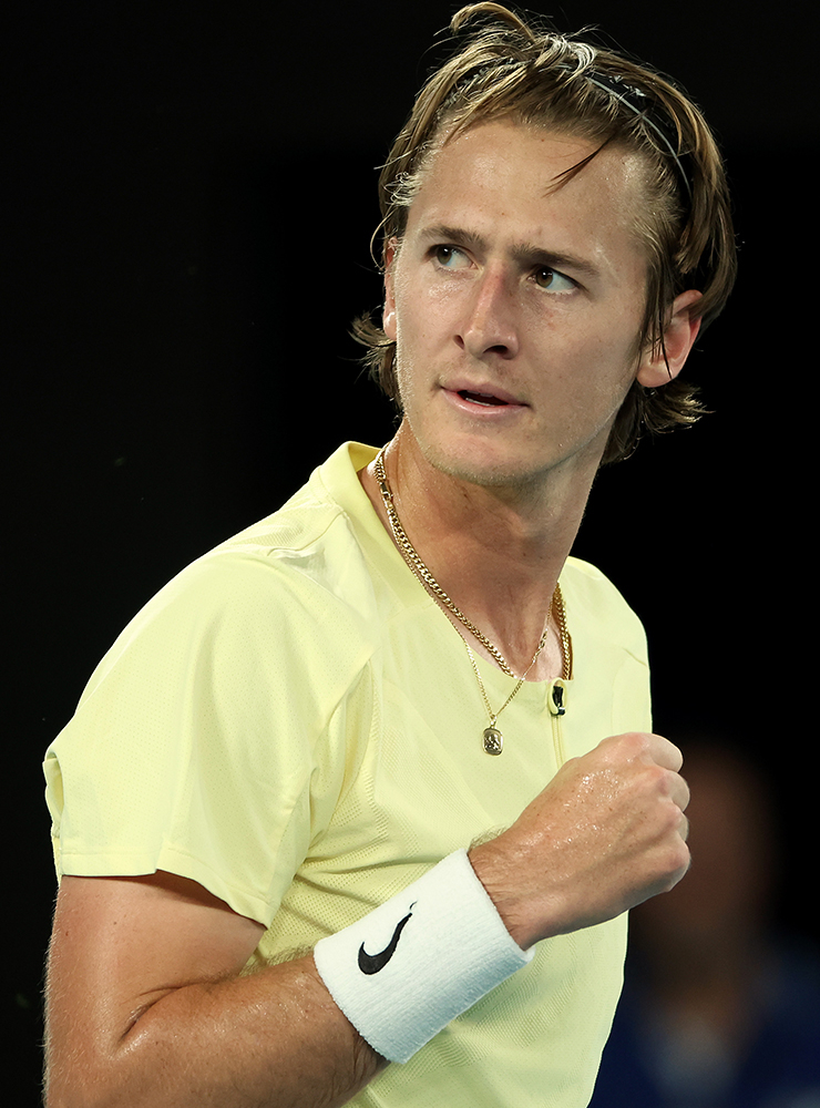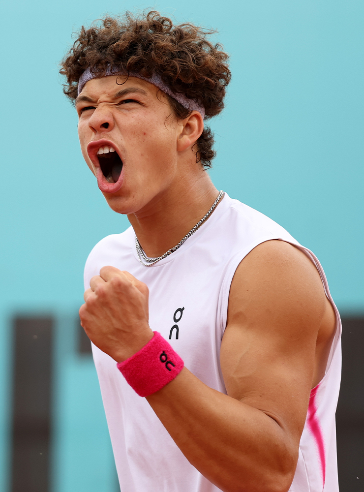 올여름 돌풍을 일으킬 선수로 벤 셸턴을 꼽는 건 어쩌면 너무 뻔한 정답일 수 있다. 잠깐 테니스의 서브에 대해 생각해보자. 오른쪽을 듀스 코트, 왼쪽을 보통 애드 코트라 한다. 자 그럼 왼손잡이 나달이 왼쪽 코트인 애드 코트에서 슬라이스로 와이드 서브를 넣는다면 어떻게 될까? 상대편에 서 있는 선수는 공이 바닥에 튀기자마자 낮게 깔린 채 자신의 왼쪽으로 급격하게 휘어 코트 밖으로 빠져나가는 상황과 맞닥뜨리게 된다. 즉 오른손잡이 리시버는 급격하게 휘어 나가는 공을 백핸드로 받아내야만 하는 것이다. 오른손잡이끼리 시합을 할 때는 이런 일이 벌어지지 않는다. 오른손잡이가 듀스 코트에서 넣는 슬라이스 역시 위협적으로 바깥으로 빠져나가기는 하지만, 상대의 포핸드에 걸린다. 애드 코트에서 넣는 슬라이스 서브는 왼손잡이의 강력한 무기다. 그런데 왼손잡이인 벤 셸턴은 당연한 옵션인 슬라이스 서브는 물론 왼손을 쓰는 전 세계의 테니스 선수 중 가장 빠른 플랫 서브까지 가지고 있다. 인디애나 웰스에서 기록한 플랫 서브의 최고 구속은 자그마치 147마일이다. 티존에 꽂아 넣으면 반응할 수 없다. 벤 셸턴을 완성시키는 건 듀스 코트에서 넣는 ‘톱 스핀 서브’다. 인디애나 웰스에서 벤 셸턴이 테일러 프리츠를 상대로 구사한 톱 스핀 서브는 속도는 느리지만 붕 하고 날아와 지면을 박차고 타격 지점에서는 210cm까지 튀어 올랐다. 프리츠는 포핸드를 간신히 뻗어봤지만, 라켓 끝에 공이 걸렸을 뿐이다. 벤 셸턴의 이름을 알린 건 가장 먼저 열리는 그랜드슬램인 호주 오픈 때였다. 국제 대회에 처음 나왔다는 선수가 단번에 8강까지 진출한 것이다. 그전까지 아예 공식적으론 국외에서 대회를 치러본 적이 미국에서 열리는 대회에만 참가해 ATP 100위까지 올랐으며, 첫 해외 무대인 호주 오픈에서 8강에 올라 100위 안에 안착했다. 현재 랭킹은 본인의 최고 랭킹인 35위. 이제 스무 살인 신출내기가 돌풍을 일으키며 유럽의 클레이코트 시즌을 뚫고 롤랑가로스와 윔블던에 도전한다. 알카로스와 얀니크 신네르의 신인 시절을 보는 것처럼 지켜보는 마음마저 설렌다. 아직 그와 맞붙어본 선수가 많지 않아 장단점이 거의 노출되지 않았다는 점 역시 이번 시즌까지는 엄청난 장점으로 작용할 것이다. 그에게는 서브만 있는 것이 아니기 때문이다. 강한 그라운드 스트로크는 물론이고 저돌적인 네트플레이도 수준급이다. 호주 오픈에서 J.J 울프를 상대로 보여준 앵글 샷이 작은 화제가 되기도 했는데, 그 장면은 오래전 라파엘 나달이 컨디션이 좋을 때 보여주던 그런 샷을 떠올리게 했다.