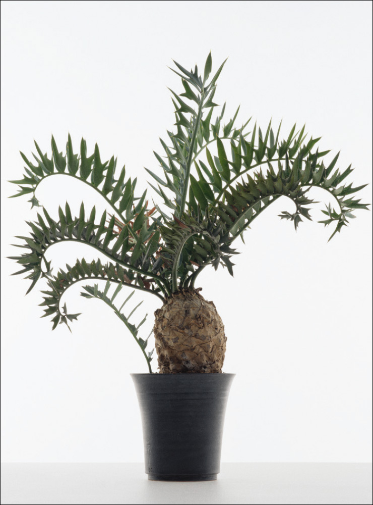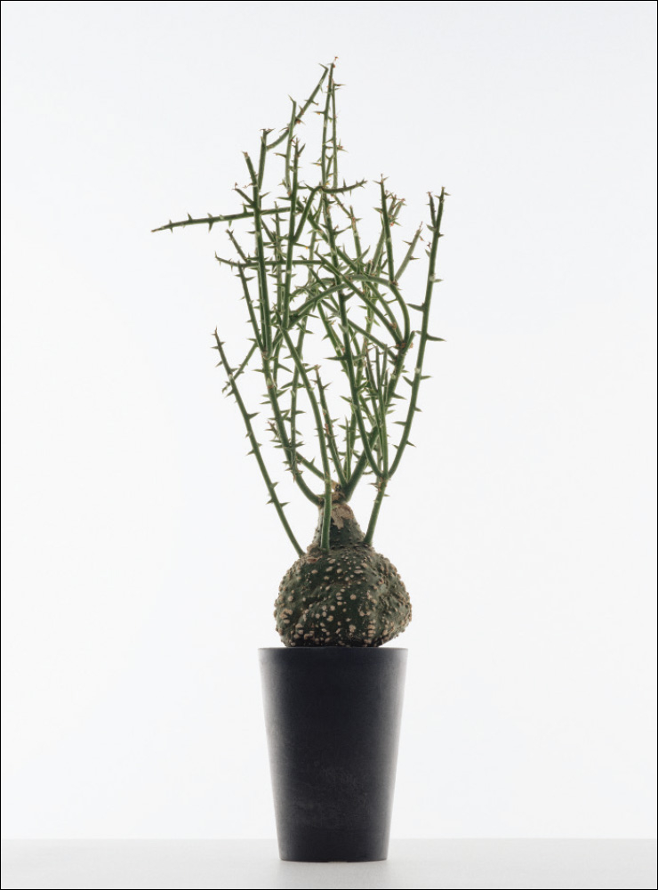 파키푸스는 마다가스카르섬의 남서부, 굉장히 건조한 지역에서 수백 년을 살기로 알려진 목본식물이다. 기껏해야 1.5m쯤 자라는데, 그 작은 크기로도 강인한 형세를 보여줘 ‘마다가스카르 식물의 왕’으로 불리기도 한다. “그런데 또 우직한 느낌에 비해서 잎은 작고 올망졸망한 편이죠. 왜 분재나 수경재배처럼 야생에 있는 형태를 조그만 곳에 옮겨 키우면서 즐기는 사람들이 있잖아요. 그렇게 감상하면서 키우기에 좋은 식물이라고 생각해요. 뿌리만 잘 내리면 실내에서 재배하기도 어렵지 않은 편이고요.” 이 파키푸스의 주인인 박두원은 자택은 물론 직장 옥상에도 괴근식물 여러 개를 두고 키우고 있다. 커피를 마시면서 한눈에 감상할 수 있도록 의자를 중심으로 잘 배치해뒀는데, 그 광경에서 얻는 가장 큰 감상은 ‘위안’이라고 했다. “파키푸스를 비롯해 괴근식물이 대체로 굉장히 느리게 자라요. 몇 년을 키워서 겨우 주먹만해진다거나, 한 달에 잎 몇 개 겨우 난다거나. 그런데 그게 저처럼 바쁘게 사는 사람한테는 힐링이 되는 부분이 있죠. 한정된 화분 안에서 흙, 물, 빛과 바람을 통제하며 얻어내는 미묘한 변화가 마치 예술품을 만드는 것처럼 느껴지거든요. 천천히 자라는 그 템포에 제 삶의 템포를 한번 맞춰볼 수도 있고요.” - 박두원(회사원)