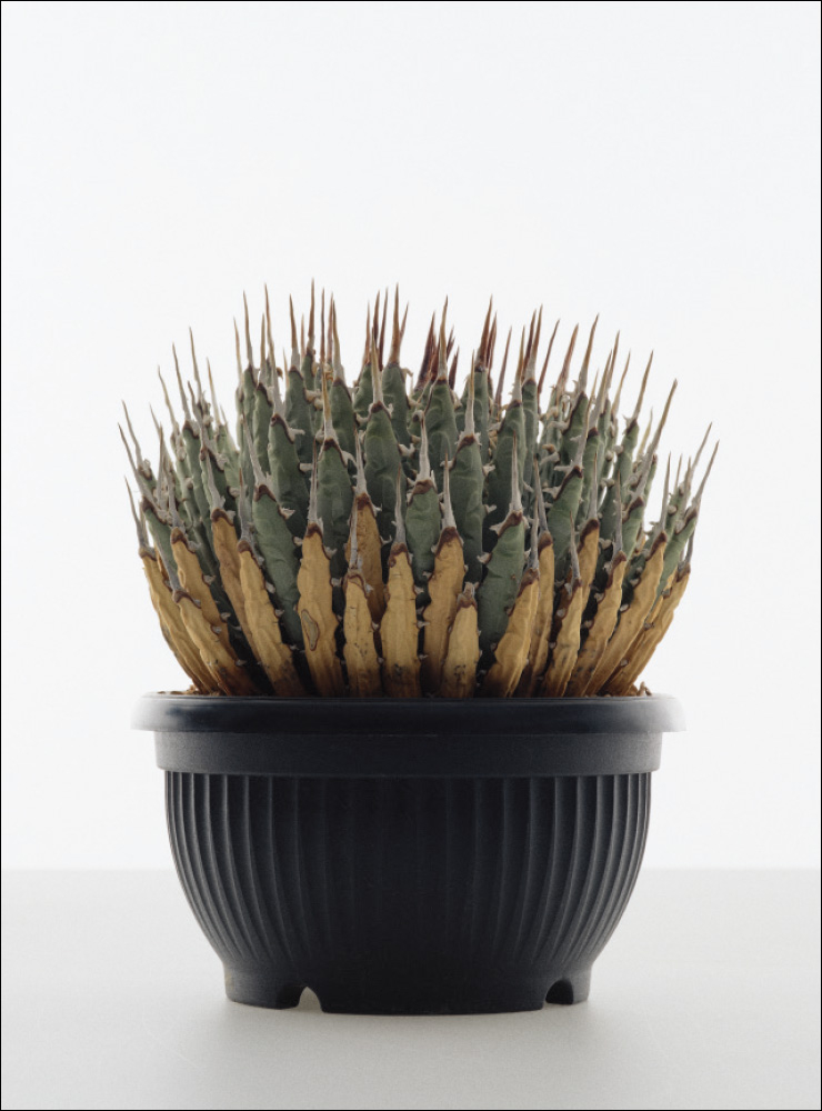 괴근식물 문화는 아프리카, 마다가스카르, 북남미 등지의 식물인 코덱스를 중심으로, 넓게는 아가베, 박쥐란 같은 식물까지 포섭한다. “특히 아가베는 지금 국내에서 제일 인기가 많은 식물이라고 할 수도 있을 것 같아요. 코덱스와 선인장 사이의 식물 종류라고 생각하면 이해가 쉬운데, 아무래도 가시가 가장 큰 매력이죠. 키우는 사람들도 좀 더 좋은 가시를 가진 아가베를 얻기 위해 노력하는 부분이 있고요.” 유영진이 선보인 식물은 아가베 중에서도 우타헨시스라는 품종이다. 사실 최근에 가장 각광받고 있는 아가베 식물은 티타노타며 우타헨시스는 한동안 유행처럼 떠올랐다가 빠르게 열기가 식고 있는 중인데, 그의 눈에는 여전히 이 품종이 제일 예뻐 보이기 때문이라고 했다. ‘불덩이 같은’ 강렬한 인상에 첫 만남부터 매료됐었다고. 그는 현재 8개의 우타헨시스를 키우고 있으며, 이 개체는 개중 크기가 가장 크고 좋은 모양(짧고 뚱뚱하며 가시가 선명한 것을 상품으로 친다)을 띤 것이다. “그리고 처음 구했을 때는 얘가 깍지벌레에 당해서 많이 아픈 상태였거든요. 이것저것 막 시도하면서 지금은 다 이겨내고 건강해졌는데, 그래서 더 애착이 가는 부분도 있죠.” 척박한 땅에서 표면에 화상을 입거나 녹아서 생장점을 잃기도 하고, 그런데 또 그 옆을 뚫고 새잎을 돋아내고. 그는 그런 면면을 보면서 왠지 모를 힘을 얻는 것도 괴근식물의 묘미라고 했다. - 유영진(사진 영상 제작자)
