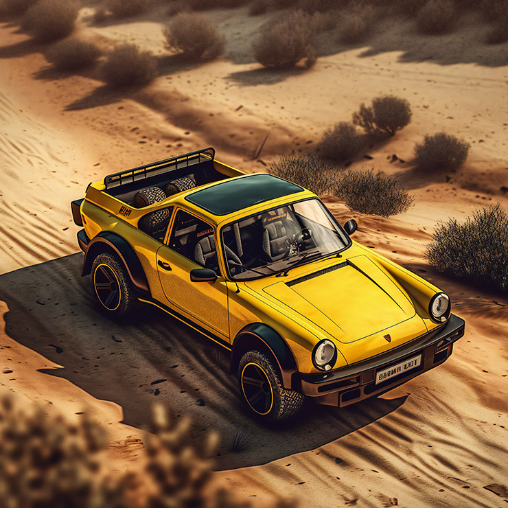 “신형 911이 아니라 예전 964 모델과 더 닮았네요. 전체적으로 인하우스에서 디자인했다기보단 애프터 마켓에서 튜닝한 것 같은 느낌이 강해요.” - 리차드 여 “보자마자 ‘오, 포르쉐에 대해 뭘 좀 아는 AI인가’ 싶었어요. 최근 핫한 사파리 혹은 오버랜드 스타일의 포르쉐라 반갑네요. 완성도가 높아 보입니다.” - 정영철