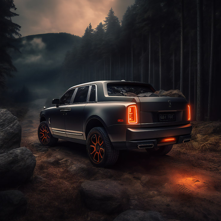 결과물을 얻기 위해 가장 오랜 시간을 쏟은 모델이다. 랜드로버를 세단으로 만드는 걸 시스템적으로 막아놓았나 의심이 될 정도였다. 100번 중 한 번 얻은 결과물 역시 랜드로버가 아니라 재규어를 본뜬 디자인일 때가 잦았다. 재규어 랜드로버가 같은 그룹에 속한 브랜드라서 벌어진 일이다. 이미지 속 세단형 랜드로버는 플래그십 모델인 레인지 로버보단 레인지 로버 벨라와 더 닮았다. 미드저니는 정통 SUV답게 선이 굵고 볼륨감이 있는 레인지 로버보단 비교적 날렵한 실루엣의 벨라가 세단을 디자인하는 데 더 잘 어울린다고 판단한 모양이다. 차의 지붕이 붕 떠 있는 것처럼 보이기 위해 A필러 색깔을 검은색으로 처리하는 랜드로버의 디자인 특징을 반영하지 않은 점은 의외다. 세단인데 사이드 스텝처럼 보이는 장치가 들어가 있는 것도 옥의 티다.