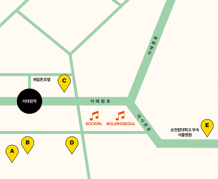 한마디로 이태원의 김밥천국이다. 가격이 저렴하고 메뉴가 다양하다는 뜻이다. 경험상 버섯전골을 주문했을 때 함께 먹는 사람들의 반응이 긍정적이었다. 예전에는 신발을 벗어야 하는 좌식 테이블이라 불편한 감이 있었으나 지금은 전부 의자에 앉아 먹는다. 이태원답게 외국인이 많은 편인데 그들이 된장찌개와 파전을 먹으며 ‘크으’ 하는 표정을 짓는 걸 보면 괜히 웃음이 나오면서 뿌듯하다. 공간 구조상 환기가 잘되는 편은 아니라서 몸에 음식 냄새가 배는 것에 민감하다면 주의가 필요하다.