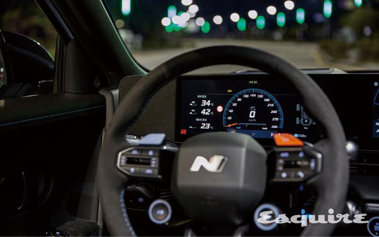 “뭐야 이거 왜 이래?” 아이오닉 5 N을 처음 시승했을 때 옆자리 동료 에디터가 했던 말이다. 그는 미세하게 흔들리는 디지털 계기반 위 바늘을 보고 그래픽 오류가 난 줄 알았던 것이다. 하지만 이건 N 브랜드가 숨겨놓은 일종의 이스터 에그다. 과거 고성능 내연기관 차를 몰면 요동치는 엔진 탓에 계기반 위 바늘이 아래위로 흔들렸는데 아이오닉 5 N이 이를 차용해 감성적인 디테일로 승화시켰다. 변속기가 없는데도 변속 충격이 느껴진다는 점, 10개의 스피커를 이용해 내연기관에서 경험했던 엔진 사운드와 배기음을 이질감 없이 구현한다는 점 역시 ‘운전 마니아’들의 감성을 한껏 자극한다.