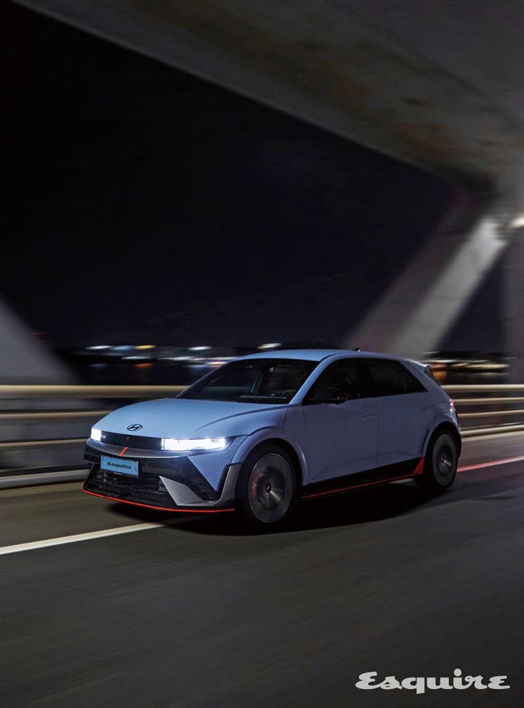 결론부터 말하면, ‘운전의 즐거움’ 측면에서 이 차는 다른 어떤 고성능 전기차와 비교해도 손색없다. 독보적인 매력을 가능케 했던 비결은 기능과 감성 두 가지로 구분된다. 일단 차가 이리저리 움직이더라도 몸을 꽉 잡아주는 스포츠 버킷 시트, 기본 모델 대비 20mm 낮아진 차체 높이와 에어로다이내믹 성능 향상을 위해 장착된 리어 스포일러가 먼저 눈에 들어온다. 또한 서킷 주행에 앞서 ‘N 배터리 프리컨디셔닝’을 활성화하면 역동적인 주행에 적합한 온도로 배터리를 예열하거나 냉각한다. 만약 코너에서 차를 미끄러뜨리고 싶다면 후륜에 구동력을 우선 배분하는 ‘N 드리프트 옵티마이저’ 기능을 사용하면 된다.