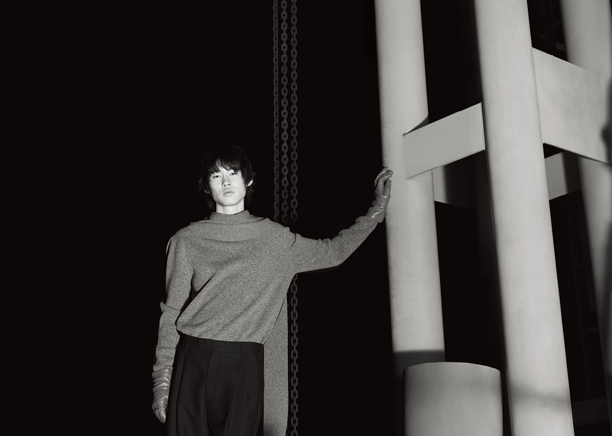 스웨터, 터틀넥 톱, 팬츠, 글러브 모두 가격 미정 로로피아나. 실크 스카프 가격 미정 김서룡.